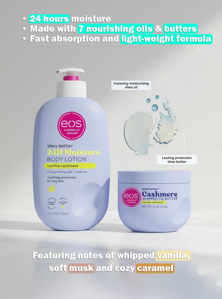 Bundle of eos Shea Better Body Lotion + Whipped Body Butter, Vanilla Cashmere